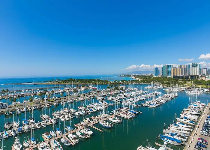 The 1-bedroom Ilikai Marina 1684 Yacht Harbor View 1Br Apartment Honolulu villa offers swift access to various city sites, such as the Duke Kahanamoku Lagoon, situated nearly 5 minutes' walk away.